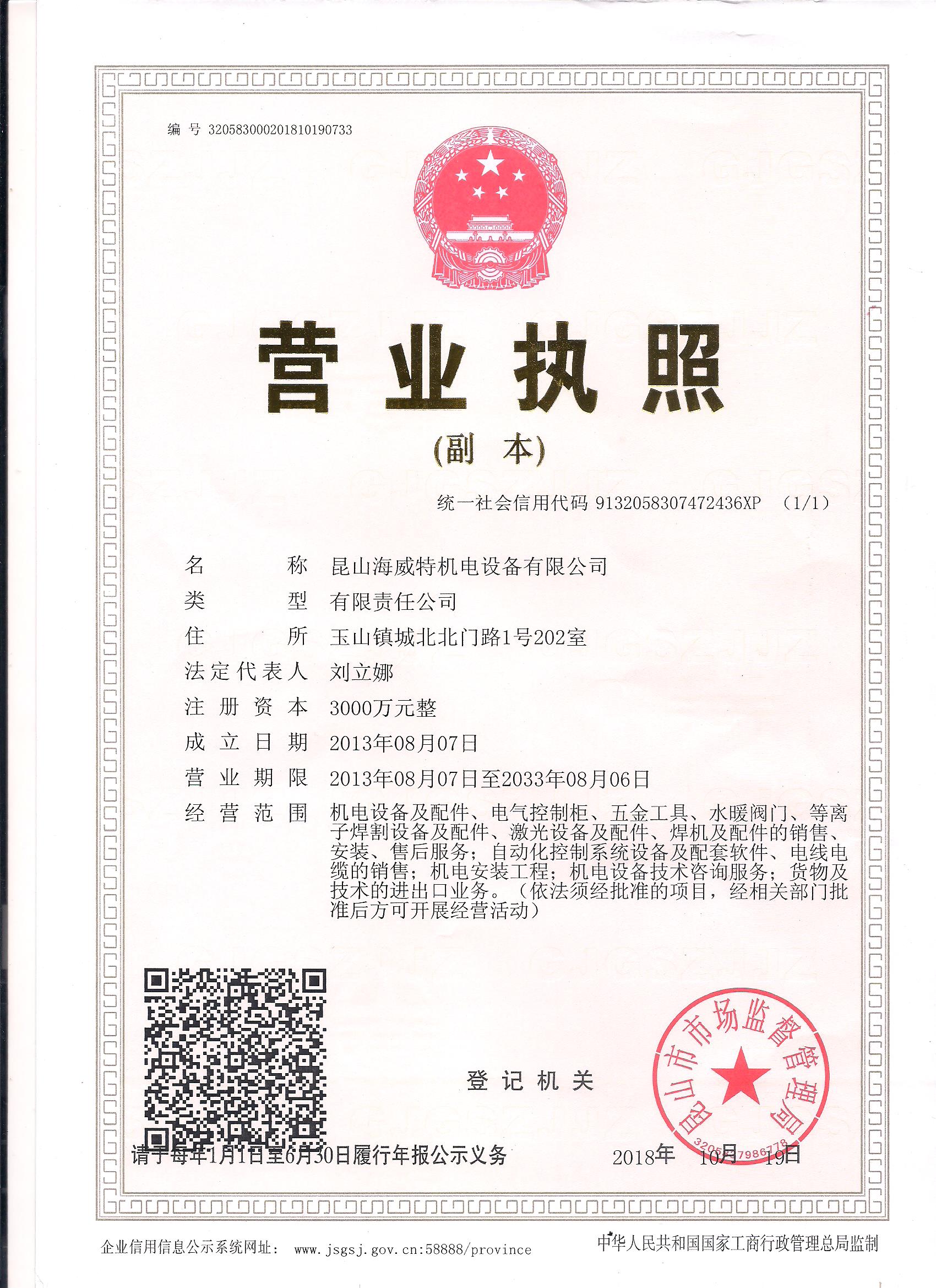 昆山海威特機(jī)電設(shè)備有限公司成立于2013年8月18日,座落于美麗的天堂蘇州市昆山陽澄湖畔,緊鄰蘇州工業(yè)園區(qū)。是一家專門從事數(shù)控、等離子、切割及焊接成套設(shè)備的銷售與技術(shù)服務(wù)供應(yīng)商。公司擁有多名經(jīng)驗(yàn)豐富的銷售與技術(shù)工程師,均是在東南沿海地區(qū)外企(深圳和上海)從業(yè)多年的優(yōu)秀人員,他們對(duì)激光、等離子、數(shù)控切割系統(tǒng)、各類焊機(jī)以及切割和焊接工藝等相關(guān)技術(shù)均相當(dāng)專業(yè),可謂是實(shí)力雄厚。 應(yīng)用領(lǐng)域涉及工程機(jī)械、船舶、軌道交通、汽車制造、能源建設(shè)等。公司秉承“信譽(yù)為上,服務(wù)及時(shí),產(chǎn)品優(yōu)良,用戶至上”...[詳細(xì)]